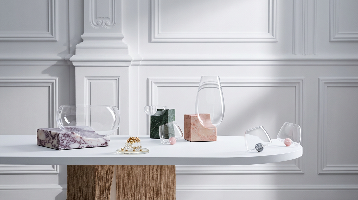 Mouth-blown lead-free crystal crafted in the Czech Republic, paired with Italian marble.